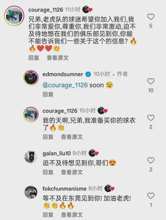 后者生动在社交媒体,在本周有球迷继续讯问萨纳姆希望你可以参与我们华南虎,萨纳姆自己则回应:很快!这个夏天萨纳姆就曾亲身发声接近加盟广东男篮,后续他自己删除了这条静态。