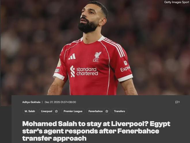 根据土媒sabah.com.tr的说法,阿巴斯告诉费内巴切方面代表,“萨拉赫要么留在利物浦,要么只会转会去沙特联赛。”