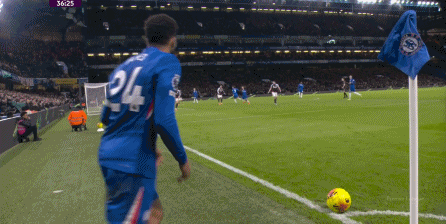 防守一侧开始承受明显的压力,整体队形就难免需要向这一侧靠拢,而如此导致的结果,就是四后卫阵型无法覆盖整个宽度的问题随之暴露,在切尔西右侧进攻的带动下,左侧的加纳乔这边也有了充裕的处理球的空间: