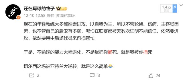 加纳乔在进攻中想得太多,以为自己有机会来个帅帅的世界波,恰恰是对手给他的空间太大的一种反向特征。