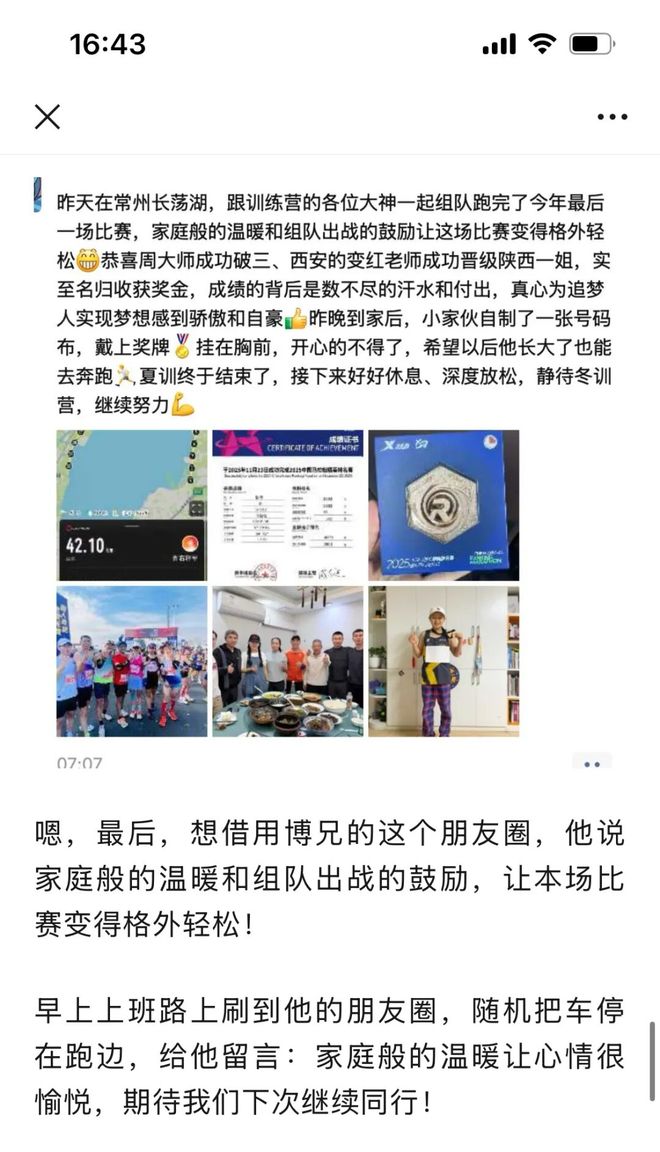 但这几个月的一同训练,以及这一场团体“出征”的长荡湖,让我感到更多的是这一帮子“战友”,这是真正让马拉松充溢温馨和开心的中央。