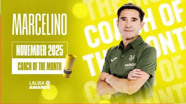 4战全胜,黄潜主帅马塞利诺当选西甲11月最佳教练