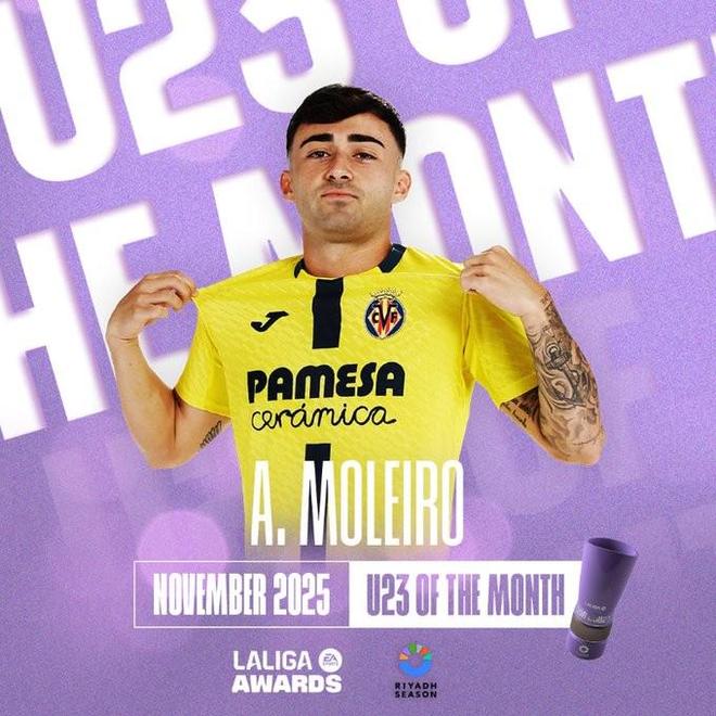 北京时间12月2日,西甲官方宣布,比利亚雷亚尔前锋莫莱罗中选联赛11月最佳U23球员,球员成功蝉联该奖项。