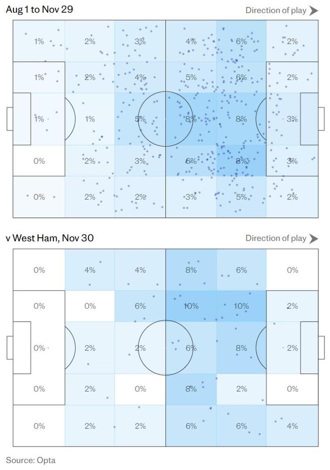 此前,将维尔茨布置在中场三人组之一时,球队常显得失衡。一旦他丢球,因中场结构变化而留下的空当极易被对手应用打出还击,队友间的联络也时常中缀。而在伦敦体育场,球队阵型清楚更为动摇,维尔茨与中场队友之间初次展现出正在构成的默契。虽然西汉姆联给予了过多空间,允许维尔茨轻松接球转身,但他确实看起来更自信、更高效,本应收获一粒进球或至少一次助攻。