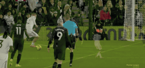第69分钟,接到萨维尼奥的传中,哈兰德本场第二次击中立柱。