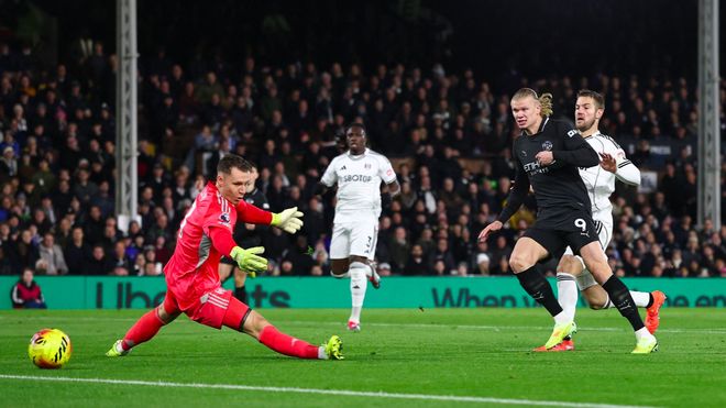 收场只要6分钟,福登在对立的同时送出手术刀普通的妙传,哈兰德直面莱诺,武断射门,皮球击中立柱弹了出来。